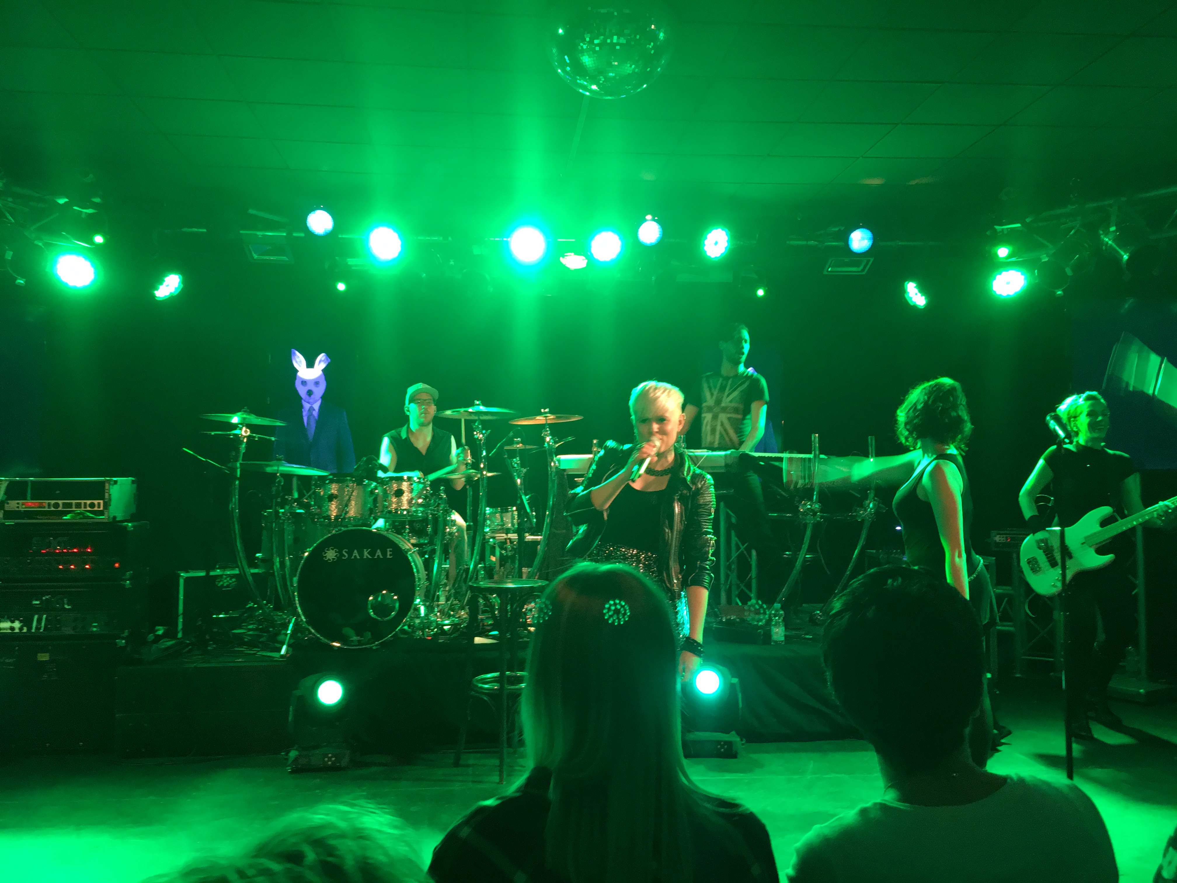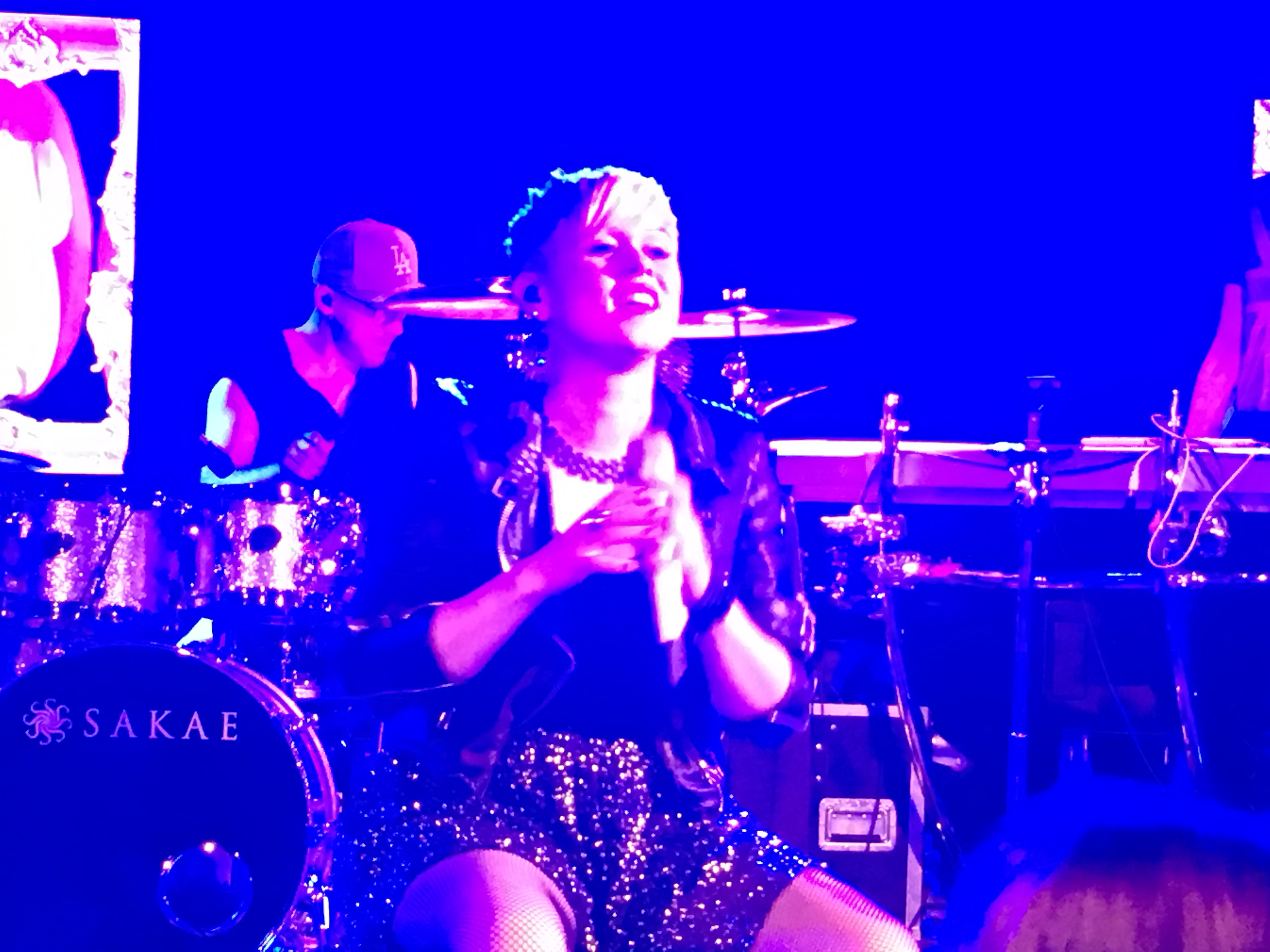 Die Sängerin hat für ihre 1,60 m-Größe ein sehr kräftiges Organ, welches der wahren Pink sehr nahe kommt. Auch über die Bühne wirbeln à la Pink würde sie gerne, doch da sie sich am Vortag wohl den Fuß übel ramponiert hatte, ist es ihr nicht möglich.